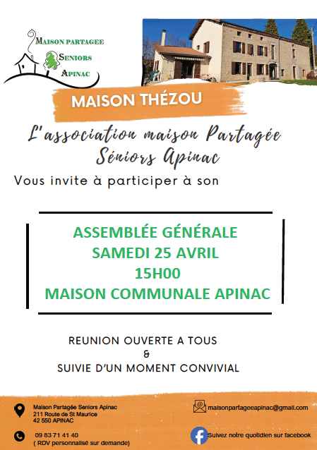 L’association Maison Partagée Séniors Apinac vous invite à participer à son Assemblée Générale.