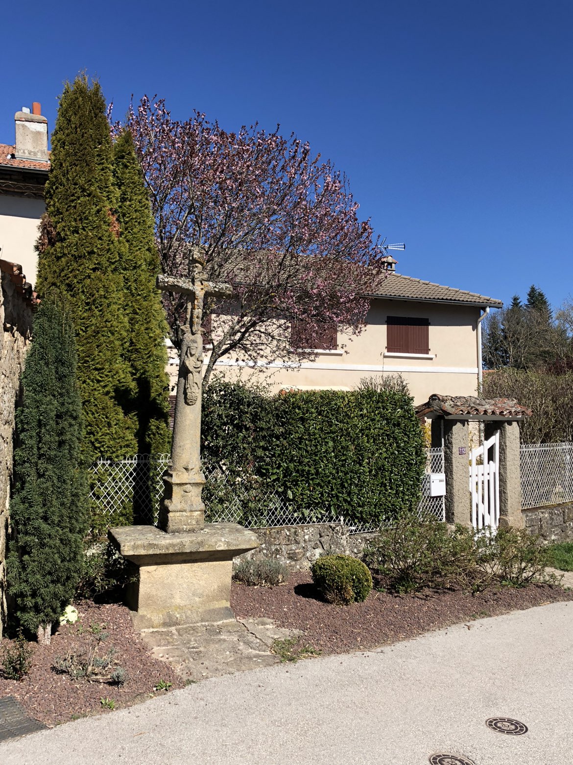 La croix près du porche d’Apinac