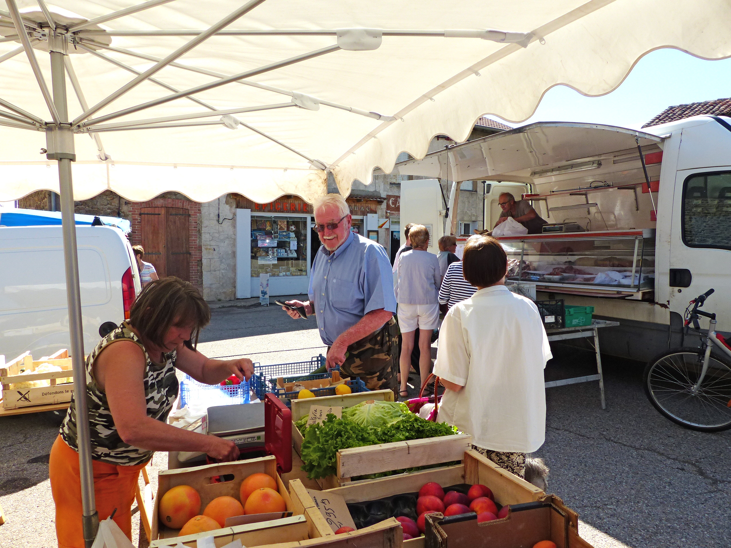 Chaque été, le petit marché estival anime la place du Puits à Apinac tous les jeudis matin à partir de 8h .